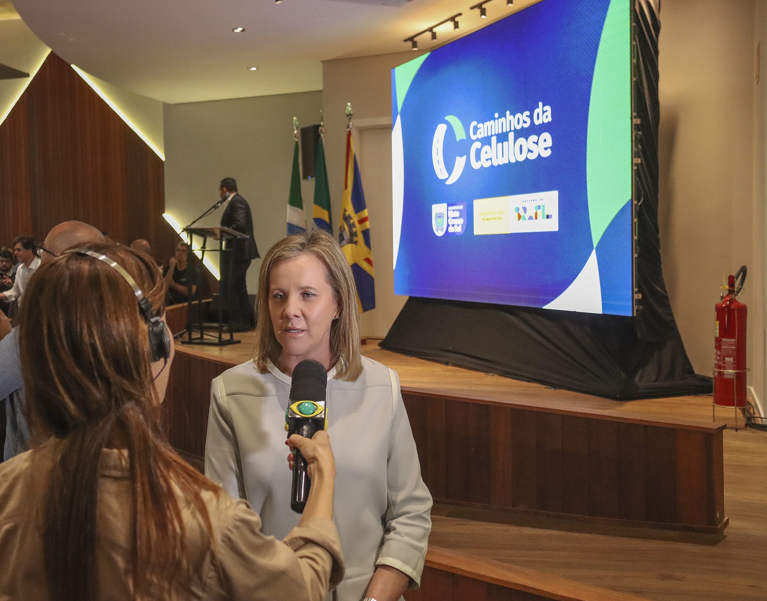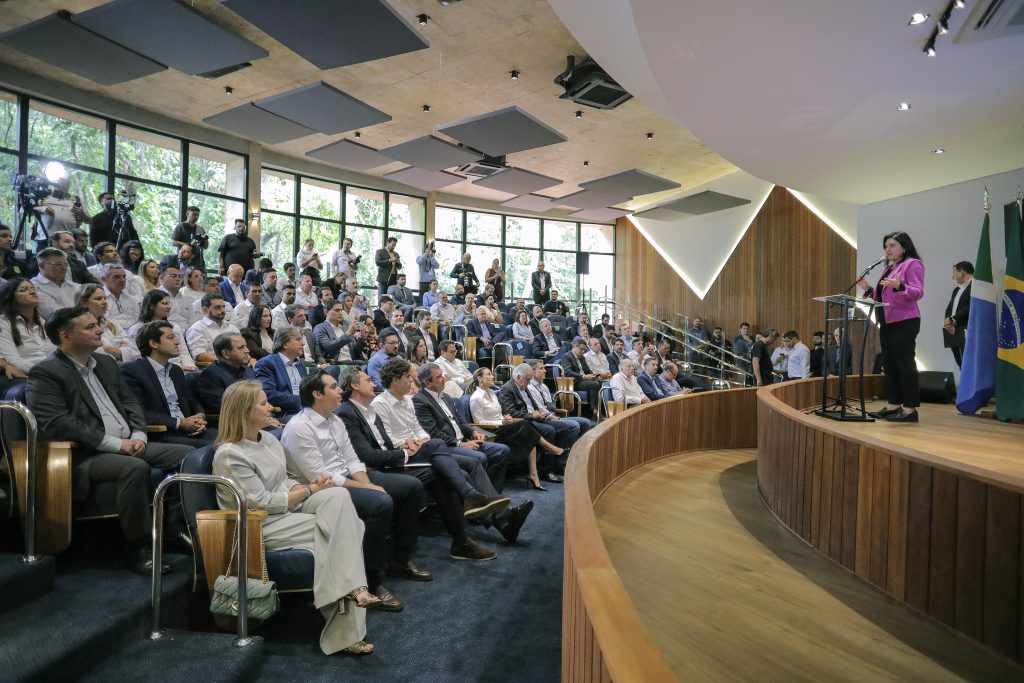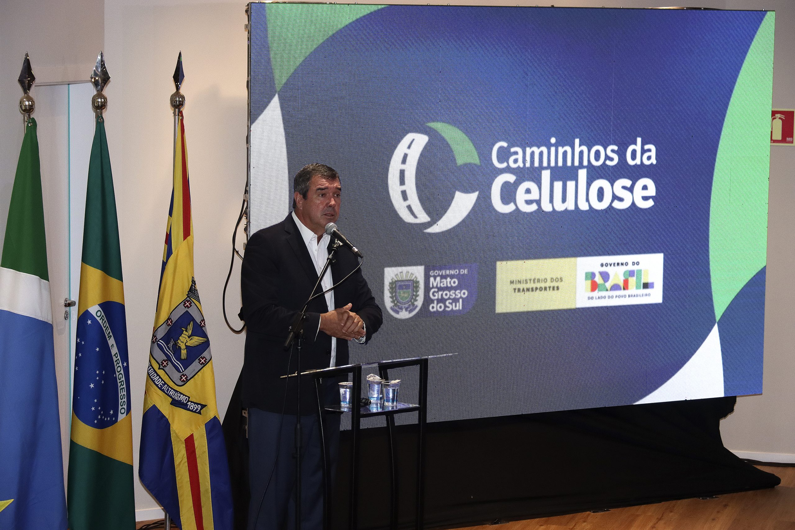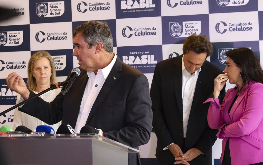 O governador Eduardo Riedel participou nesta segunda-feira (2) da apresentação técnica da Rota da Celulose. Esta nova modelagem rodoviária dispõe de tecnologia, modernidade e flexibilidade, sendo possível novos investimentos caso haja aumento no fluxo do tráfego. O objetivo da parceria público-privada é impulsionar o desenvolvimento do Estado e dar segurança ao usuário.